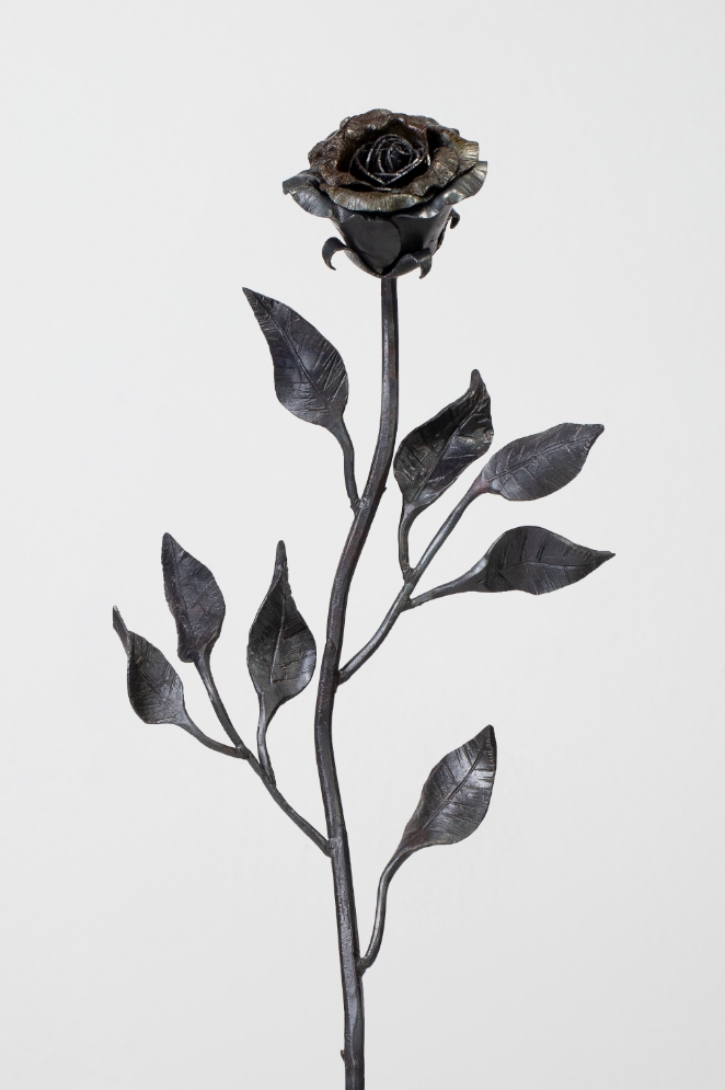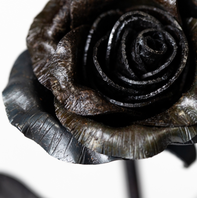 Forged by hand with wrought iron and finished with artisan care, the semi-open rose reflects the mastery that makes it unique, with slightly different details on each specimen.